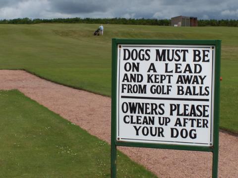 Golf courses in Scotland are considered essentially public land.  On every course we played, including the Old Course at St. Andrews, we saw people walking their dogs, often across fairways.  They never got in the way.