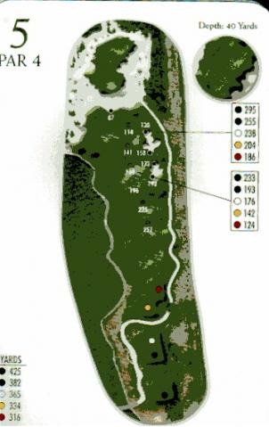 Short and left of the 3rd green leaves a delicate lob wedge to a narrow green.
