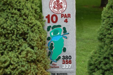 Although the playing season is short in Hamilton, NY, home of Colgate University, the school-affiliated Seven Oaks golf course is long on nice views and a few challenging holes. The par 4 10th, at 380 yards from the tips, isn't long, but then again the tee shot is less a matter of length and more a matter of position. Be right, or else. A sprawling
