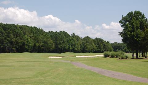 set about 15 feet below the landing area. A pond to the right and a bunker and mounds short and left add up to a scary second shot, even with a short iron in hand. The finishing hole is a 456-yard brute with a shallow, pitched green guarded by marsh from the front left to the rear; just beyond, a huge live oak provides a nice backdrop (chairs were set up there facing the tree and water beyond, the likely scene of an impending wedding ceremony). Reaching the 18th in regulation is a tall order but will put a lot of pressure on one's opponents if a match is close.