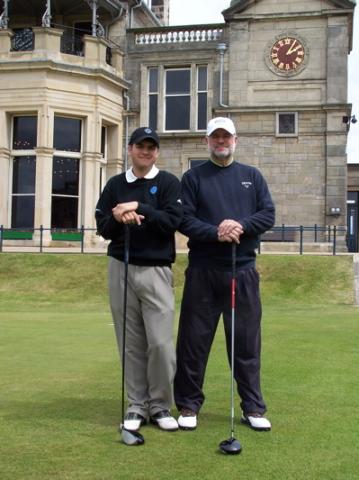 All but one of our courses in Scotland was laid out on links land, the exception a fine combo of parkland and heathland at the 190-year old Scotscraig Golf Club.  I thought I had played links courses here in the states - at Truro on Cape Cod, Shinnecock Hills on Long Island, the Ocean Course on Kiawah Island - but there are clear differencesstandrewsoldtimandme.jpg between that group and the true links courses we played at Lundin, Elie, Crail and, of course, St. Andrews.  The Scottish links are firmer, less sculpted, and more natural looking than their American counterparts.  The perfectly shaped sod bunkers we played around and, occasionally, into certainly were not carved by sheep huddling against the harsh winds, but it was easy to imagine that scene hundreds of years ago.  Links golf in Scotland is golf darn close to its primordial state.