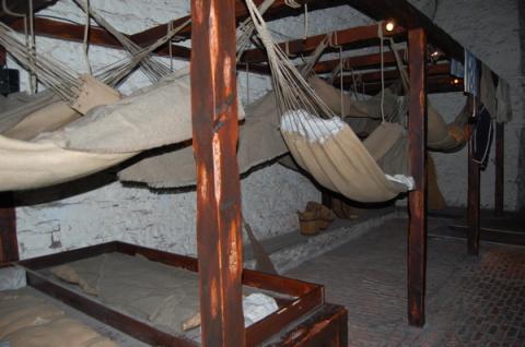 Reinvention is in the lifeblood of the city.  We had a splendid tour of Edinburgh Castle yesterday; it dominates the skyline of the town and offers panoramic views across the Firth of Forth to Fife (but not quite as far as St.eburghcastleprisonerqtrs.jpg Andrews) and to the city below.  The original Castle was built before years had quadruple digits in them - some evidence says earliest occupation was 900 B.C. - but was lost to the dreaded English in 1296.  When the Scots finally recaptured it in 1314, King Robert The Bruce vowed never to let it fall into English hands again.  All that remains of that Castle is the tiny St. Margaret's chapel, capacity 20 souls, which is the oldest remaining building in Edinburgh.  David II ordered the Castle rebuilt in the 14th Century.