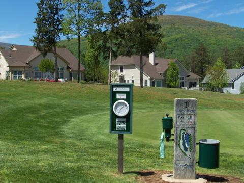 I visited Wintergreen a few years ago and played the Shamokin and Tuckahoewintergreentuckahoe1sttee.jpg nines.  The Tuckahoe course was recently renovated with a special new grass planted throughout.  The new Cavalier zoysia replaces the previous bent grass fairways, according to a report in the Golf Club Industry newsletter.  In addition, the club added six new tees and 300 yards in length; the Tuckahoe nine now stretches to 3,800 yards at the tips.  All nine greens were resized to Jones' original specifications and replanted with a tight bent grass the course managers believe will result in smoother putting surfaces.